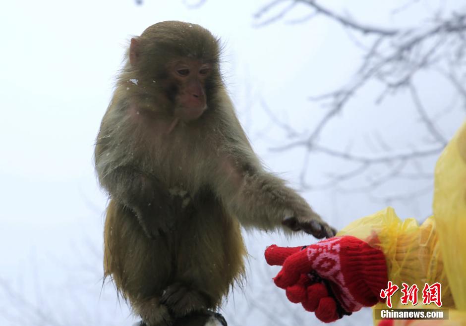 2月22日正值元宵佳节,湖南张家界核心景区武陵源喜降春雪。在黄石寨景区,成群的野生猕猴或在雪中追逐戏闹,或在树枝上攀爬跳跃,或蜷缩着身子卖萌,成为张家界武陵源的一道春季新景。吴勇兵 摄
