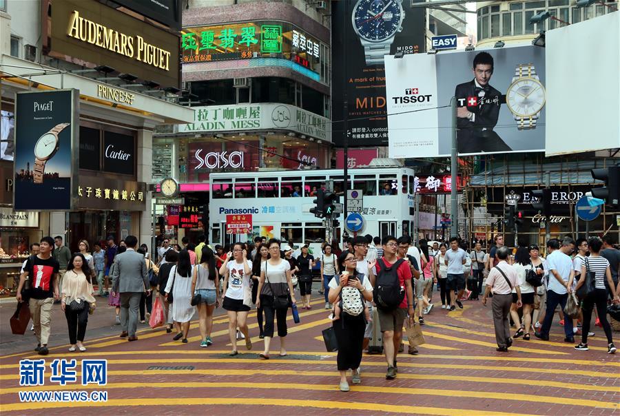 香港市民和游客在铜锣湾商业区游览购物(2015年8月8日摄)。新华社记者李鹏摄
