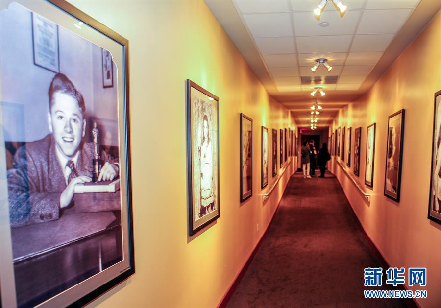 这是2月23日在美国洛杉矶好莱坞拍摄的连接杜比剧院后台和记者采访室的通道。届时奥斯卡奖得主经此前往拍照和采访地点,通道两边墙上挂有奥斯卡奖得主的历史照片。