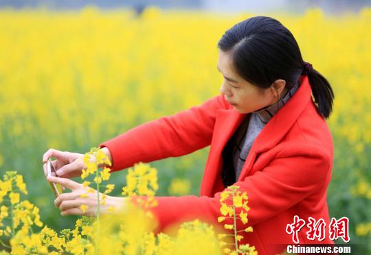 图为游客在用手机拍摄油菜花。 黄国良 摄