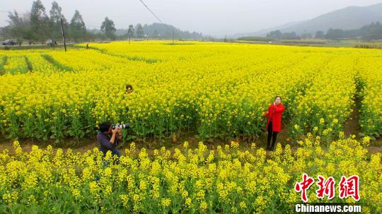 广西北部山区万亩油菜花迎春盛开引游人