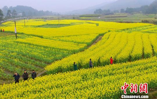 图为在油菜花田中行走的游客。 谭凯兴 摄