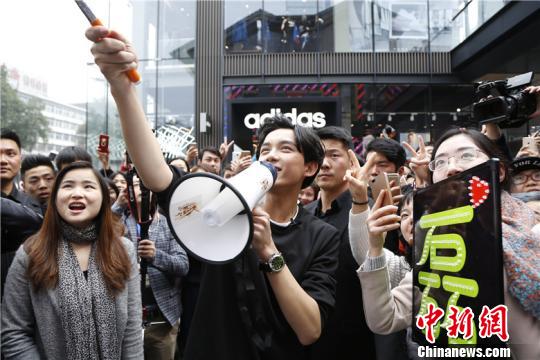 吴磊在成都接头“做任务”与成都市民亲密互动。 钟欣 摄
