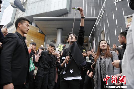 吴磊在成都接头“做任务”大玩自拍。 钟欣 摄