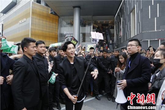 吴磊在成都接头“做任务”与成都市民亲密互动。 钟欣 摄