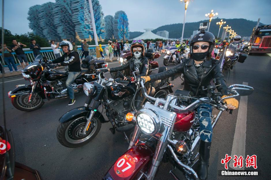 2月28日,2016中国海南国际摩托车嘉年华携手海南国际马拉松在海南三亚举行。来自北京、山东、河北等全国各大摩托车俱乐部的车友齐聚三亚街头,庞巴迪、哈雷、宝马、古瓷、奥古斯塔等名车荟萃,炫酷十足,引众多市民围观。图为装扮炫酷的女摩托车手等待发车。 中新社记者 骆云飞 摄
