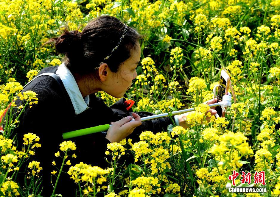 3月1日,福州春光明媚。福州花海公园内近百亩油菜花竞相绽放,成金色花海。引来大批市民及游客流连花海中,踏青赏花。 刘可耕 摄