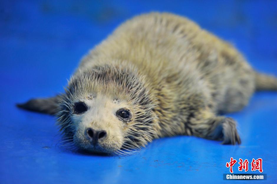 3月1日是国际海豹日,作为中国目前最大的斑海豹救治与保护基地——大连老虎滩海洋公园·极地馆,迎来了猴年首批生产的斑海豹满月。斑海豹是中国国家二级珍贵、濒危的野生动物保护种类,它们多栖息于大连周边的黄渤海海域,这些憨态可掬的动物每年春节前后,都会在渤海湾畔繁衍生息。图为刚出生的小斑海豹。中新社记者 钟欣 摄