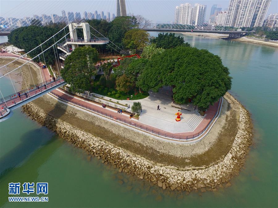 近日,福州江心公园改造项目竣工重新对外开放,岛上林木繁茂、景致宜人,每天通过索桥登岛的游客络绎不绝。位于福州闽江之中的江心公园原名三县洲,面积4.83公顷,1982年建成后因优雅的环境及独特的地理位置成为情侣们的约会地,被称为“爱情之岛”。1997年因配合三县洲大桥建设,江心公园被作为施工建材堆放地和农民工驻地而封闭。新华社记者姜克红摄