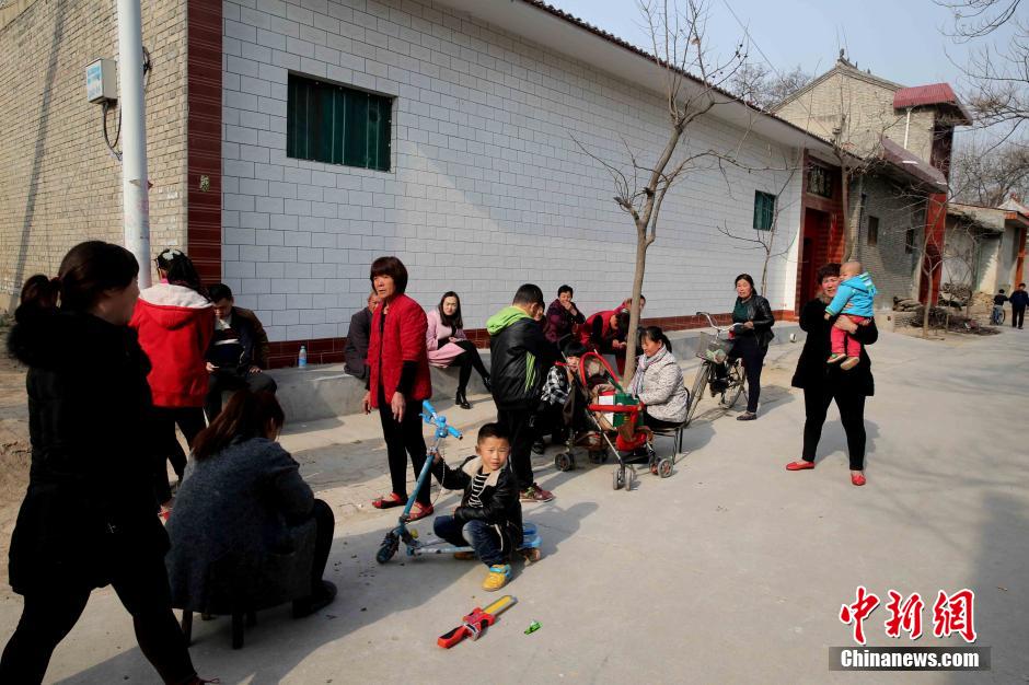 3月12日,山西省运城市盐湖区,村民走出房屋躲避地震。 陈卫 摄