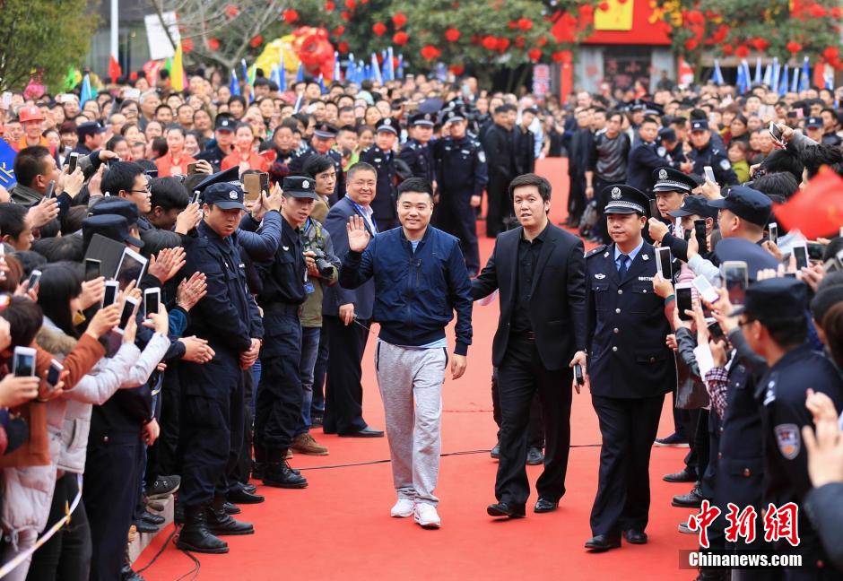 3月16日,第二届中式台球世锦赛开幕式仪式前的球星走红毯环节,中国“神奇小子”丁俊晖、“九球天后”潘晓婷一出场,就引起现场球迷的欢呼与围观。 姜涛 摄