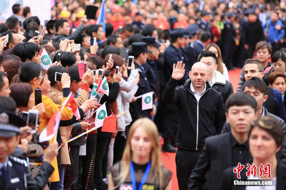 英国选手艾伯尔顿一行步入红毯。 姜涛 摄