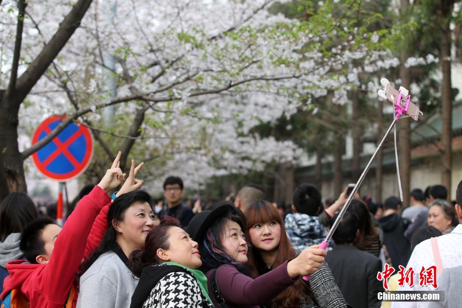 3月20日,大批市民和游客涌进南京鸡鸣古刹门前的樱花大道上,欣赏盛开的樱花盛开,感受春日气息。 中新社记者 泱波 摄