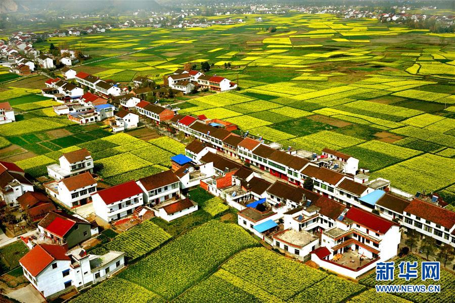这是3月19日航拍的汉中市南郑县新集镇盛开的油菜花海。