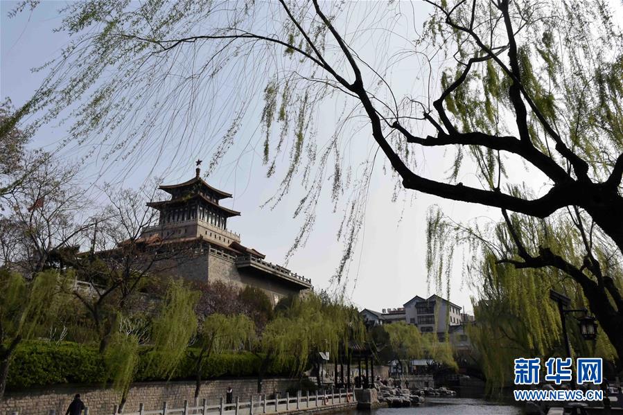 3月23日,济南护城河畔柳树发新枝。近日,山东济南持续升温,济南护城河两岸柳树吐新,春意盎然。 新华社记者 朱峥 摄