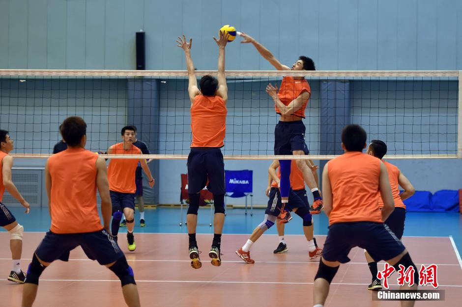 中国男排在京备战奥运落选赛