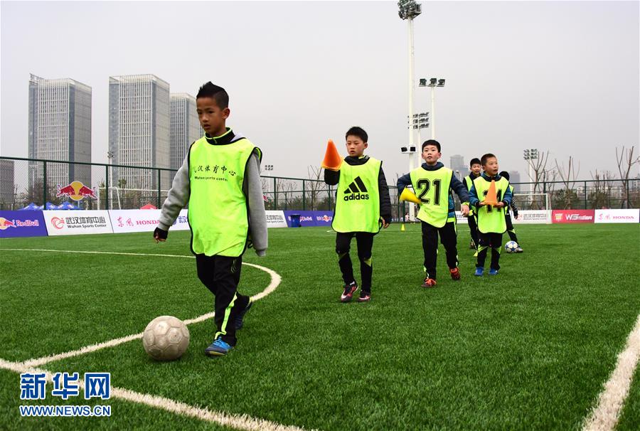 3月26日,孩子们在足球公园草坪上训练。新华社记者程敏摄