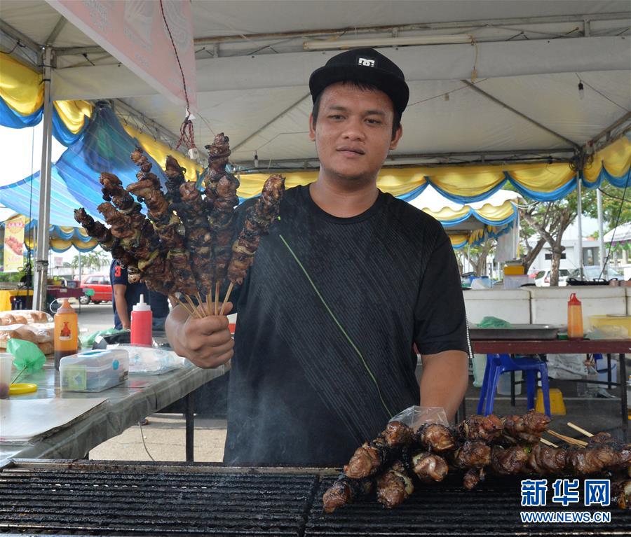 3月26日,在文莱首都斯里巴加湾市,一名商贩在美食节上售卖肉串。主题为“假日美食,享受乐趣”的文莱美食节3月23日至29日在文莱首都斯里巴加湾市举行。数百家中小企业在本届美食节上展销各式各样的本地传统食品、饮料以及外来美食,令当地民众和外国游客大快朵颐。新华社发(杰弗里·黄摄)