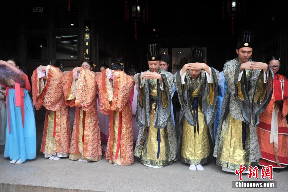 礼成后向现场的见证者鞠躬致谢。 吕明 摄