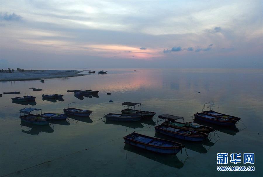 傍晚时分,渔民结束一天的劳作,把渔船停靠在岸边(4月29日摄)。海南省三沙市赵述岛位于西沙七连屿西北角,目前有70余户200余人常驻岛上,其中大部分是渔民。三沙建市以来,赵述岛上建起发电站、海水淡化厂等一系列设施,解决岛上的供水供电问题,岛民的生活条件越来越好。2012年11月,赵述岛环岛公路竣工,解决了岛上居民的道路交通难题。岛上的渔民们安居乐业,生活蒸蒸日上。新华社记者 杨冠宇 摄