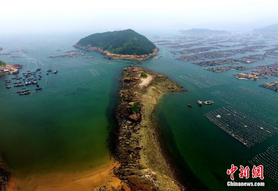 5月2日,从空中鸟瞰福建连江的海上渔村,错落有致、蔚为壮观。 王东明 摄