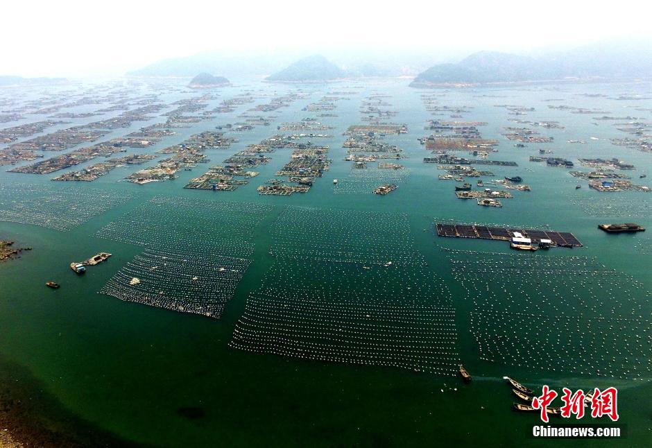 5月2日,从空中鸟瞰福建连江的海上渔村,错落有致、蔚为壮观。 王东明 摄