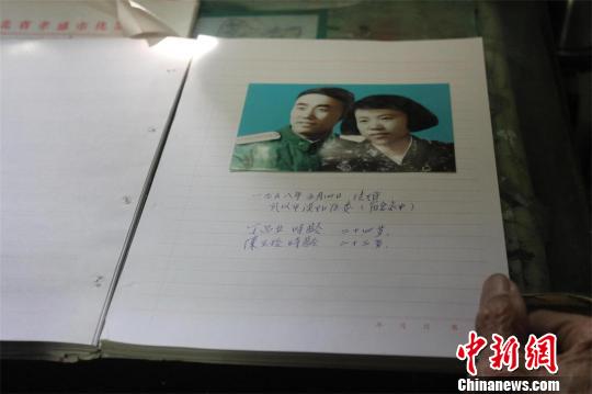 《回忆录》中有不少老照片,图为丁昌业年轻时的结婚照 梁婷 摄