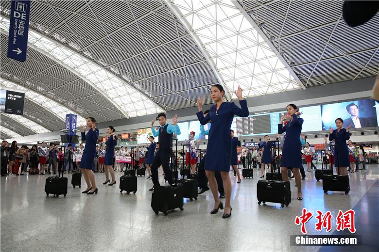 5月3日,身着制服的40名空姐、空少齐刷刷出现在成都双流国际机场的候机楼大厅,并随着音乐的节拍跳起了律动的舞蹈,吸引了大量游客驻足观赏、拍照。舞蹈结束,这群空姐空少们还给旅客送上了精美的礼物和美好的祝福。 据悉,这是在2016年“五四”青年节即将来临之际,成都双流国际机场、成都航空公司、四川西南航空职业学院联合开展的以“真情服务完美旅程”为主题的青春时尚快闪活动。参加快闪的都是优秀团员,他们希望在“五四”青年节通过时尚快闪的方式体现当代青年的个性,并且努力践行真情服务的理念,传递正能量。毛成山 摄
