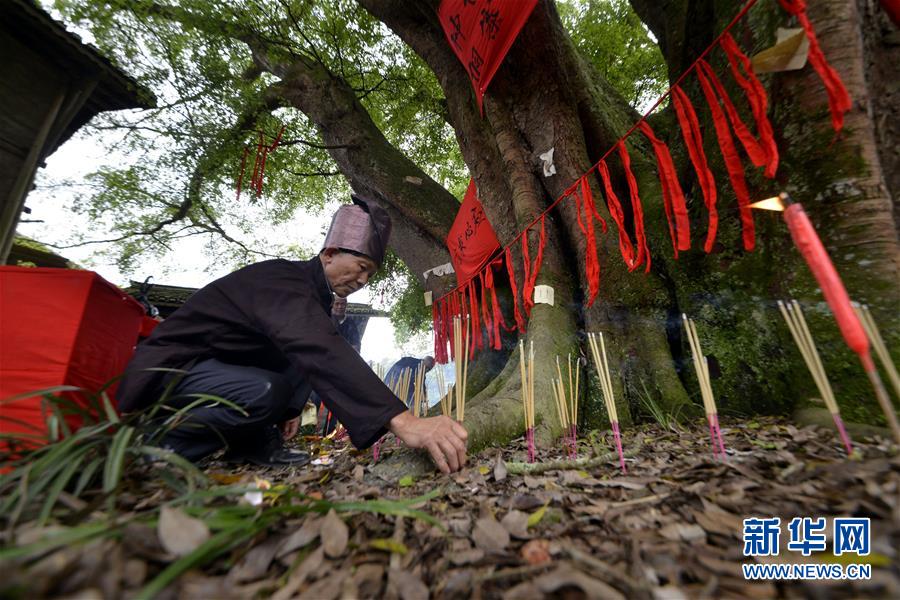5月3日,贵州省榕江县乌公侗寨侗族老人在过竹米节时祭古树。当天,贵州省首批魅力侗寨——榕江县乌公侗寨欢度传统的竹米节,重温侗民远古农耕风情。竹米节也叫吃竹笋饭,在每年谷雨至立夏期间竹笋生长的时候,侗族群众采摘斑竹笋,把糯米灌进笋筒煮熟食用。这样既能保持米饭的原味,又有竹笋的清香,并且还方便携带至坡上田间地头食用。久而久之,侗族人每到春夏之交的农耕时节都会过竹米节,杀猪宰羊祭祀侗族祖先,唱歌跳舞祈求五谷丰登。新华社发(王炳真 摄)