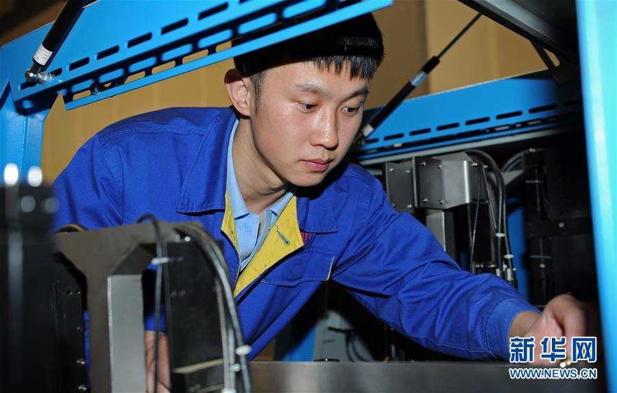 4月25日,张文良在沈阳造币有限公司车间工作。 1米83的个头,身材偏瘦,略带东北口音,如果不是事先知道,难以想象这位看上去面容白皙,略带腼腆的小伙子,21岁已经站上了全国技能大赛的最高领奖台。张文良,沈阳造币有限公司90后技师,先后获得第八届“振兴杯”全国青年职业技能竞赛工具钳工“第一名”、第九届“振兴杯”全国青年职业技能竞赛机械设备安装工“第三名”的突出成绩,成为“双料”高级技师。新华社发
