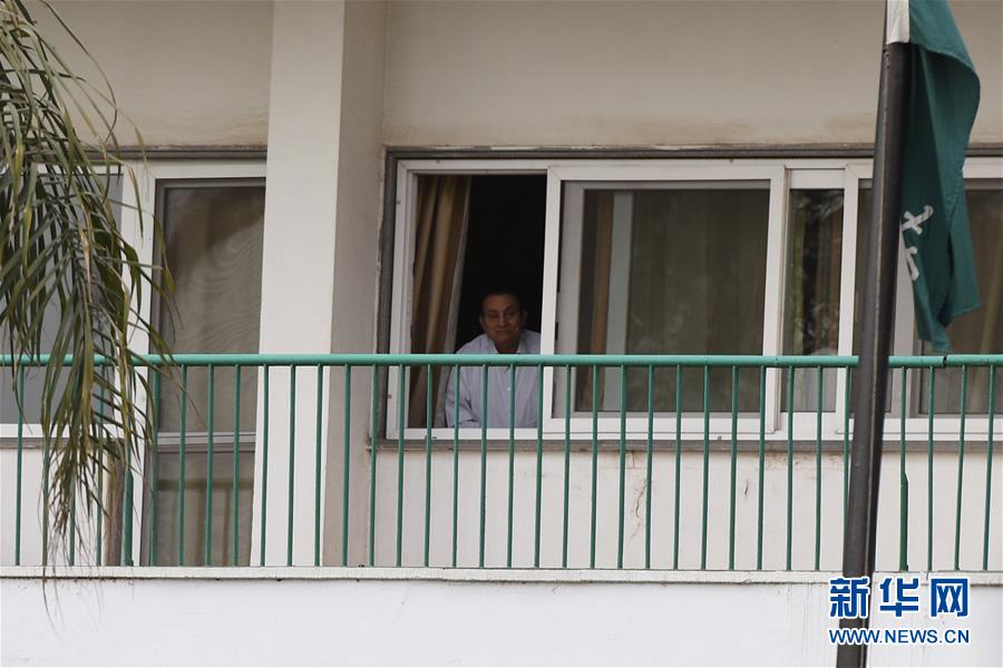 5月4日,在埃及开罗,埃及前总统穆巴拉克向其支持者挥手致意。当日,埃及前总统穆巴拉克的支持者在其受到软禁的开罗南部马阿迪军事医院外举行集会,庆祝他88岁生日。 新华社记者赵丁喆摄