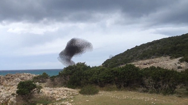 鸟类学家称,椋鸟成群结队盘旋是为了便于猎食,同时抵御猎鹰等猛兽天敌的攻击。此外,结群移动还可以让他们在夜晚温度较低时抱团取暖。(米粒)