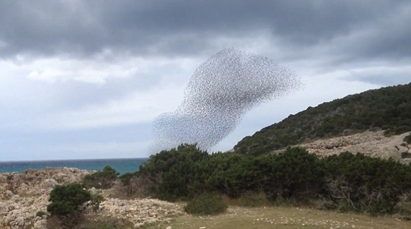 数千只椋鸟结队盘旋 空中震撼“起舞”