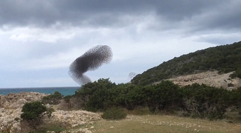 数千只椋鸟结队盘旋 空中震撼“起舞”