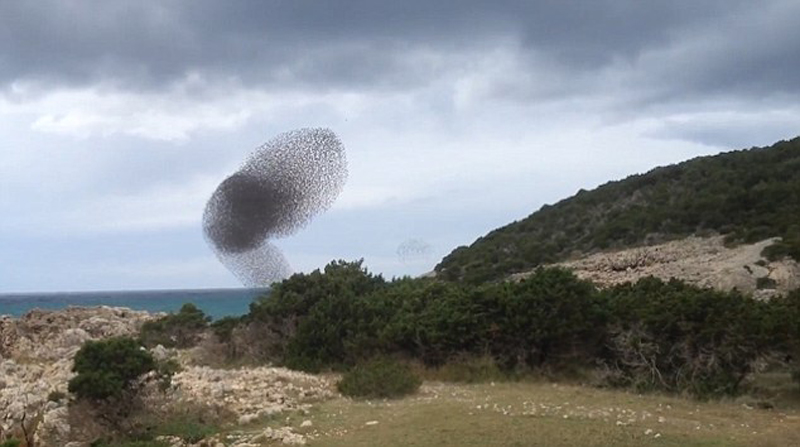 鸟类学家称,椋鸟成群结队盘旋便于猎食。(网页截图)