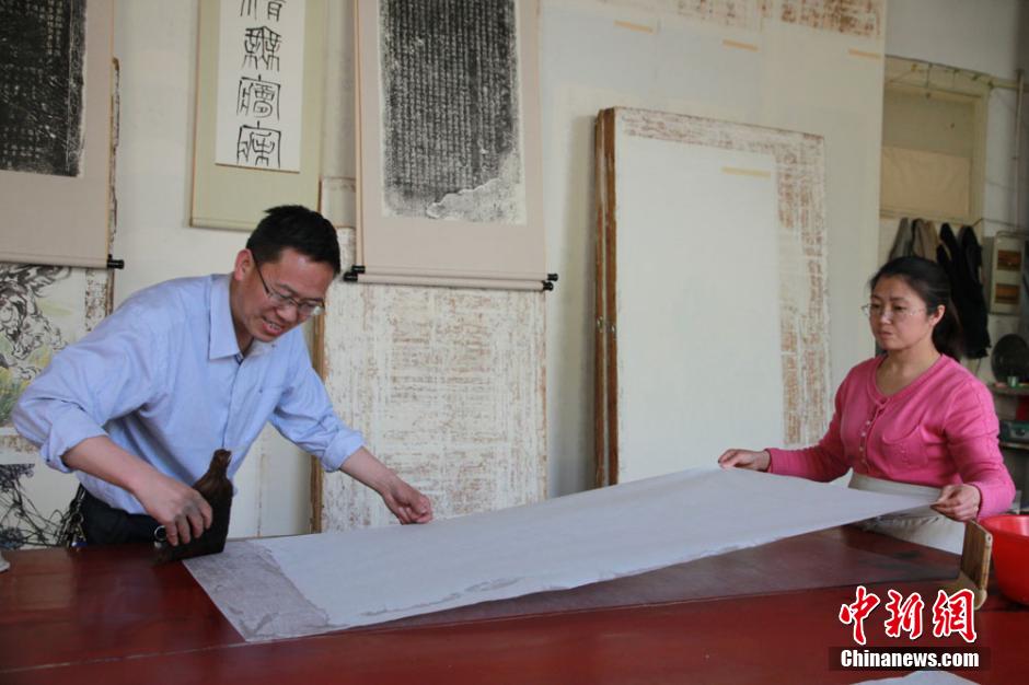 图为托画,在宣纸上上糨糊。 刘玉桃 摄