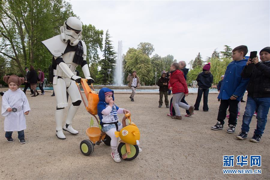 5月4日,在匈牙利首都布达佩斯,“星战”迷庆祝“星球大战日”。 新华社发(弗尔季·奥蒂洛摄)