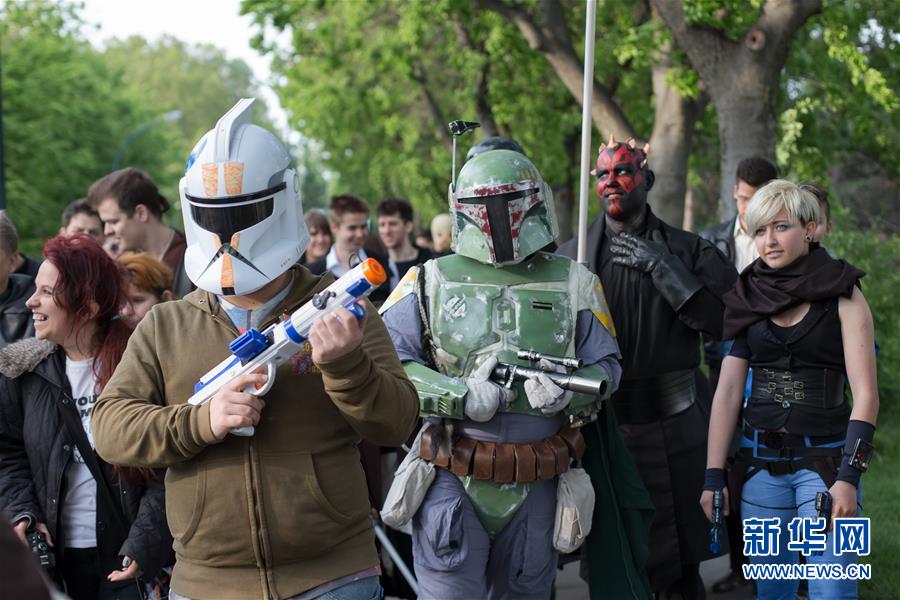 5月4日,在匈牙利首都布达佩斯,“星战”迷庆祝“星球大战日”。 新华社发(弗尔季·奥蒂洛摄)