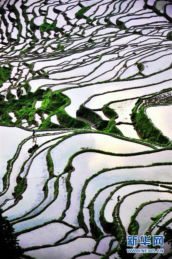这是5月5日清晨拍摄的贵州省加榜梯田美景。时值立夏时节,位于贵州省从江县大山深处的加榜乡加榜梯田蓄水充盈,层层叠叠,田埂蜿蜒,构成一幅醉人的初夏画卷。 新华社发(刘朝富 摄)