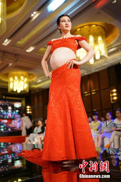5月5日,重庆市妇幼保健协会组织的“R女王风采时装秀”正式拉开序幕,以大肚孕妈为主角进行时装走秀。 钟欣 摄