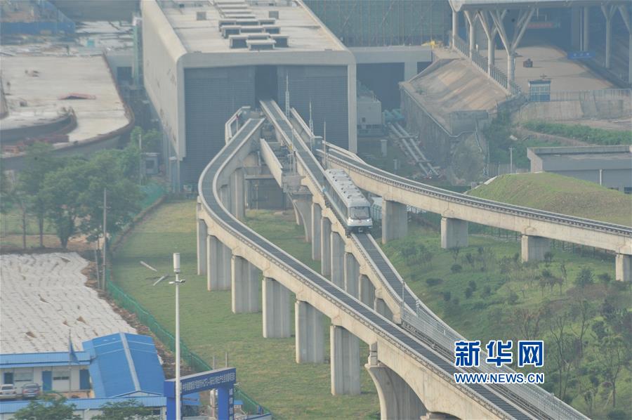 上线试运营的长沙磁浮快线驶出车站(5月6日摄)。新华社记者龙弘涛摄
