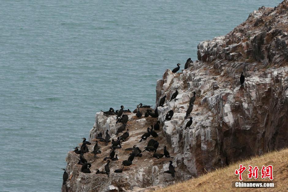 图为青海湖鸟岛上筑巢的鸬鹚。 罗云鹏 摄
