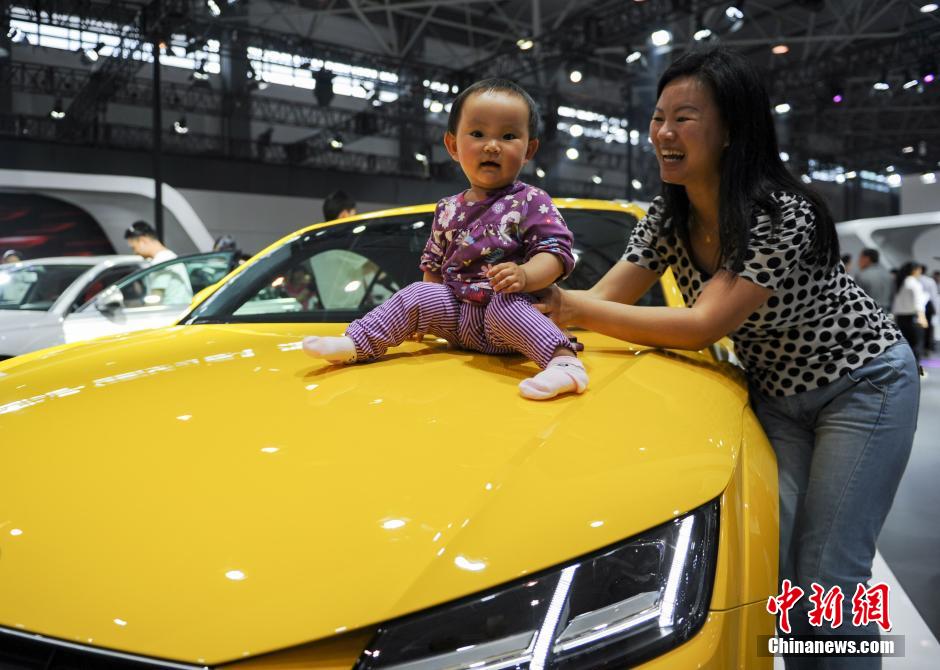 5月6日,一位小朋友在靓车上当“车模”。当日,第6届贵阳国际汽车展览会在贵阳国际会议中心举行,本届车展共吸引80余个汽车品牌、300余家全球汽车厂商参与。据车展组委会介绍,不少世界名车将在本届车展上首秀。 中新社记者 贺俊怡 摄