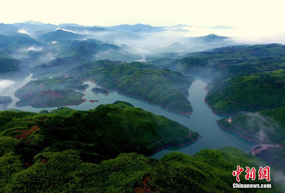5月8日,从空中鸟瞰福建福鼎茶山,被大片云海环绕,如同仙境。此处属于福建省级森林公园——大洋山森林公园,除了种植福鼎特有的白茶外,还拥有樟树林、柳杉林等30多个植物群落,目前已成为福鼎对外推广的一张名片,吸引了大批游客前来游玩。 中新社记者 王东明 摄