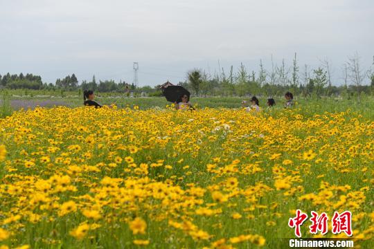 沉浸在花海中的游客。 张浪 摄