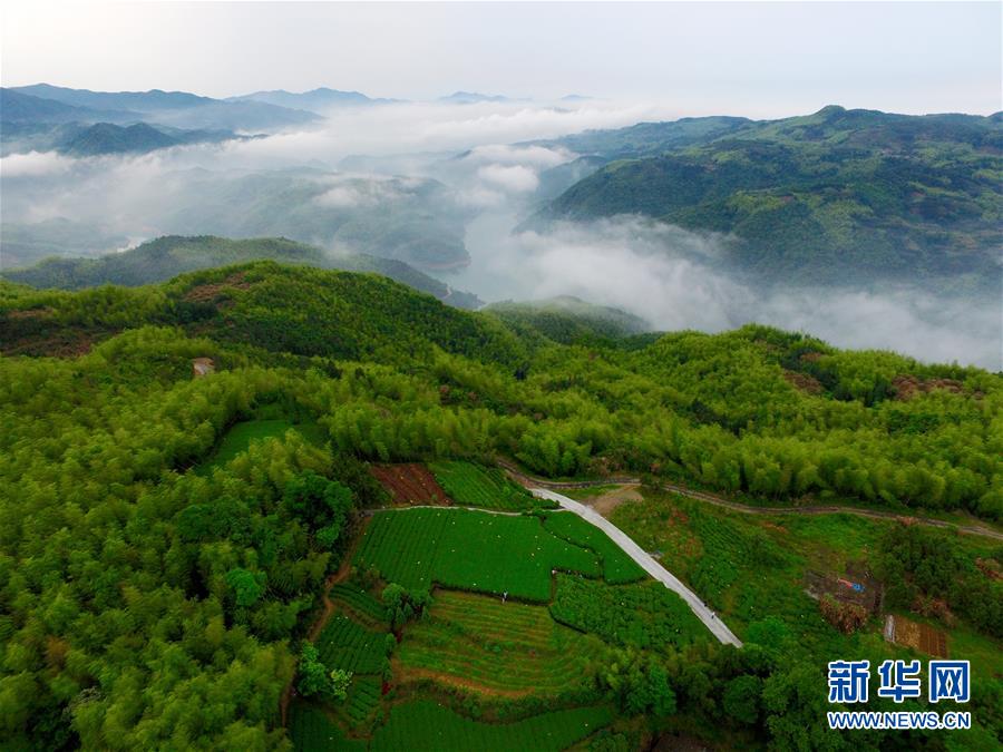 福鼎市磻溪镇大洋村的生态茶园位于桑园水库旁的高山之上(5月8日摄)。