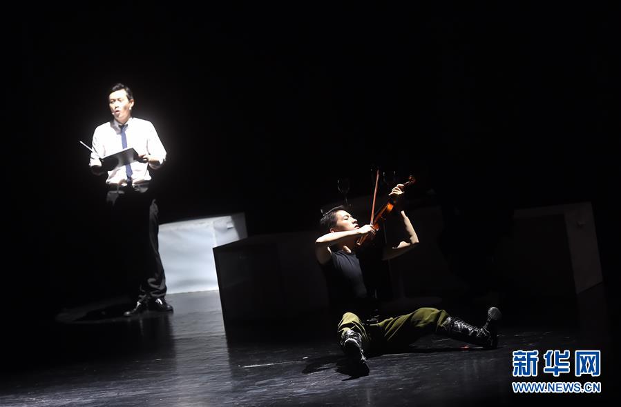 5月6日,演员在表演《士兵的故事》。当日,由中国国家交响乐团城堡室内乐团带来的中文版音乐戏剧《士兵的故事》在清华大学上演。该剧改编自俄罗斯作曲家斯特拉文斯基的同名舞剧,讲述士兵与恶魔斗争的故事。新华社记者金良快摄