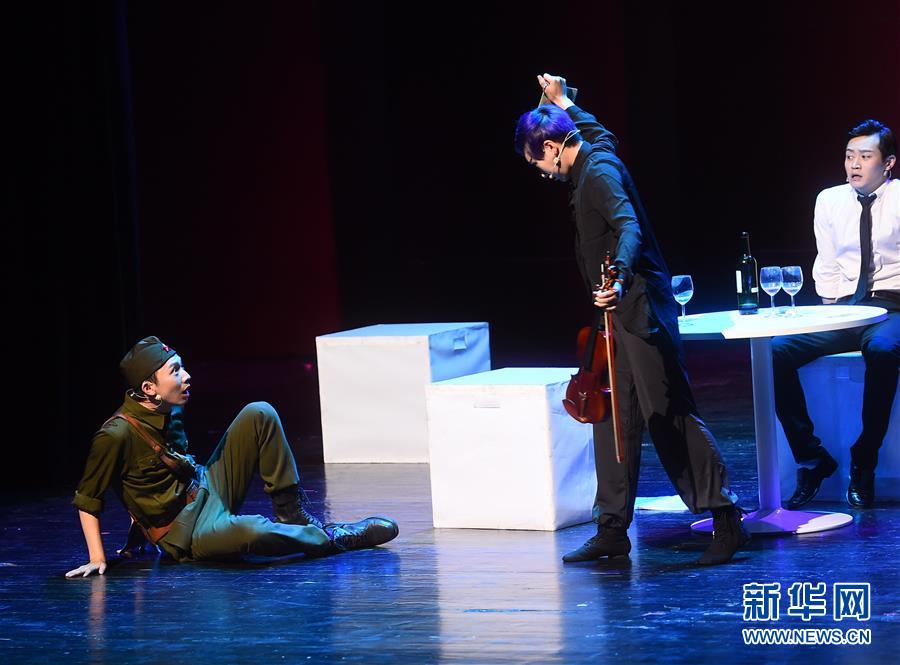 5月6日,演员在表演《士兵的故事》。当日,由中国国家交响乐团城堡室内乐团带来的中文版音乐戏剧《士兵的故事》在清华大学上演。该剧改编自俄罗斯作曲家斯特拉文斯基的同名舞剧,讲述士兵与恶魔斗争的故事。新华社记者金良快摄