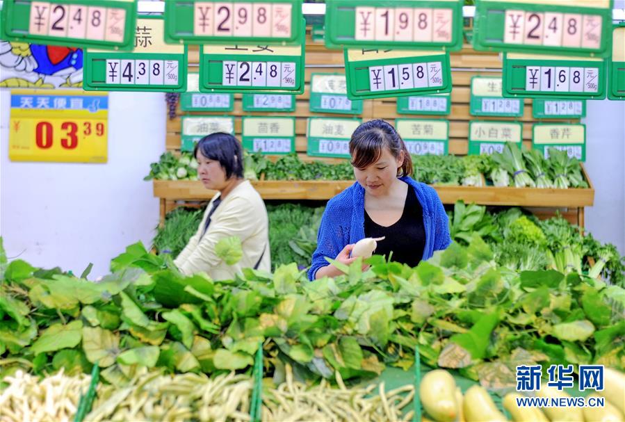 5月9日,市民在河北省邢台桥东一家超市选购蔬菜。 5月10日,国家统计局发布数据,2016年4月份,全国居民消费价格总水平同比上涨2.3%。 新华社记者 朱旭东 摄