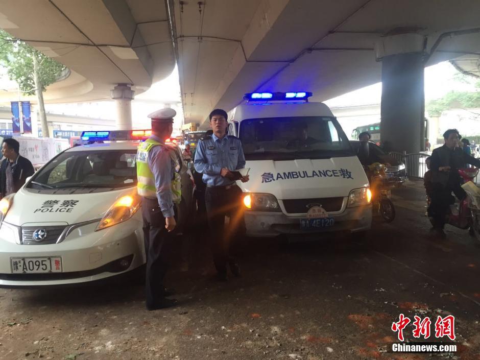 警察在事故现场维持秩序。 韩章云 摄